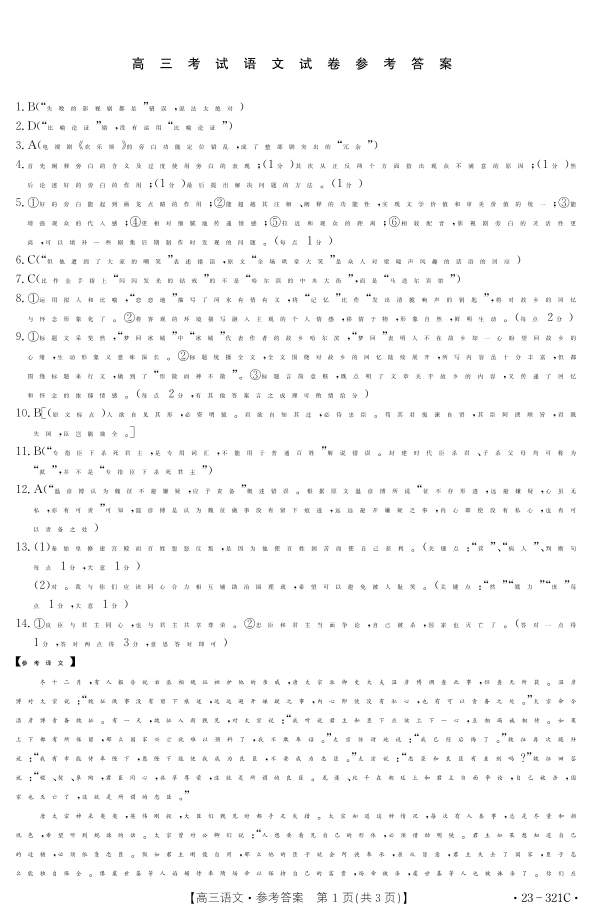 2023届辽宁省县级重点高中联合体高三(一模)丨语文答案