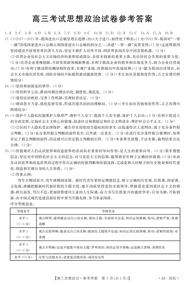 2023届辽宁省县级重点高中联合体高三(一模)丨政治答案