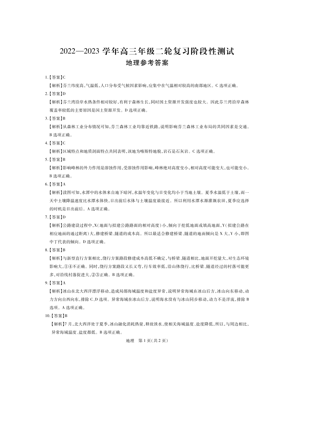 【全国甲卷】2023广西壮族自治区高三下学期第二次高考模拟地理答案