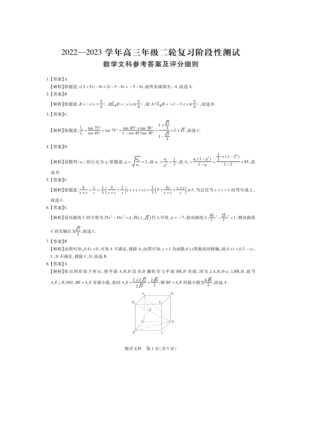 【全国甲卷】2023广西壮族自治区高三下学期第二次高考模拟文数答案