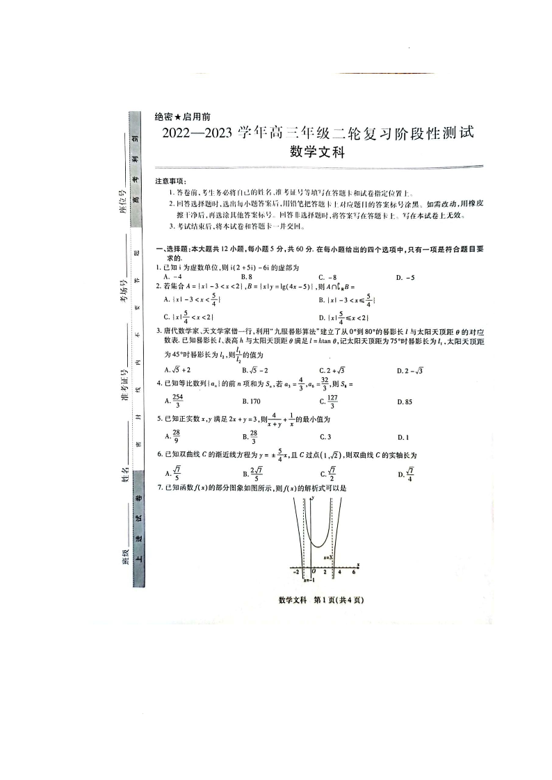 【全国甲卷】2023广西壮族自治区高三下学期第二次高考模拟文科数学试卷