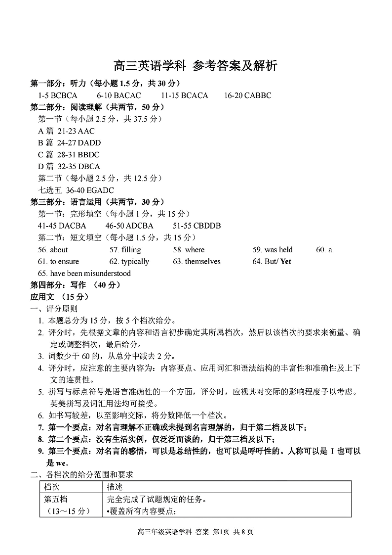 【浙江卷】浙江省金丽衢十二校、七彩阳光等校2022-2023学年高三下学期3月联考英语学科参考答案及解析