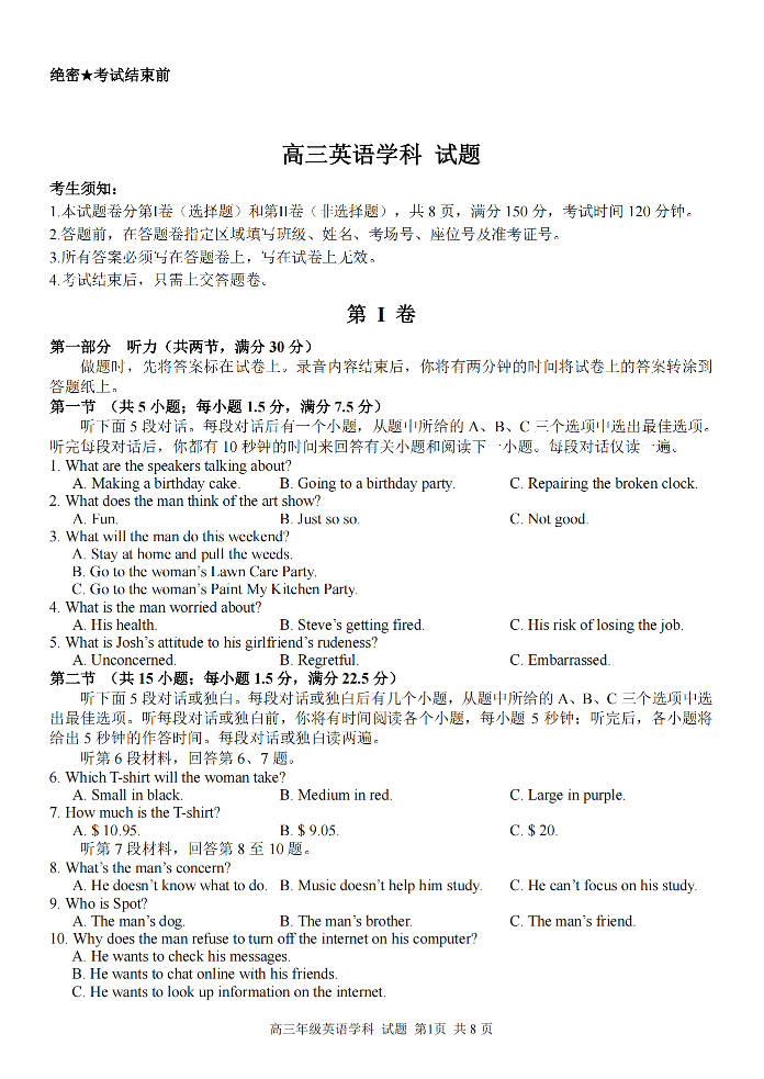 【浙江卷】浙江省金丽衢十二校、七彩阳光等校2022-2023学年高三下学期3月联考英语试卷