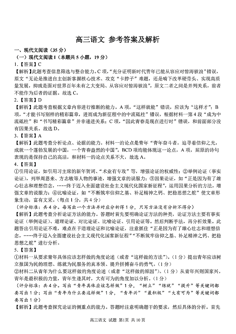 【浙江卷】浙江省金丽衢十二校、七彩阳光等校2022-2023学年高三下学期3月联考语文学科参考答案及解析