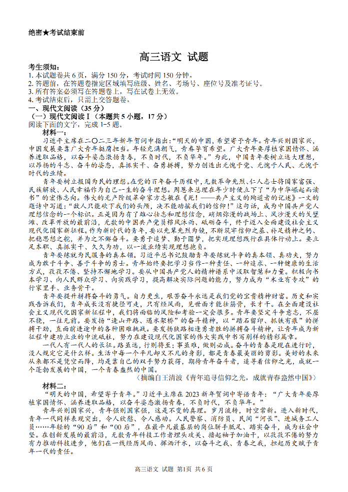 【浙江卷】浙江省金丽衢十二校、七彩阳光等校2022-2023学年高三下学期3月联考语文试题