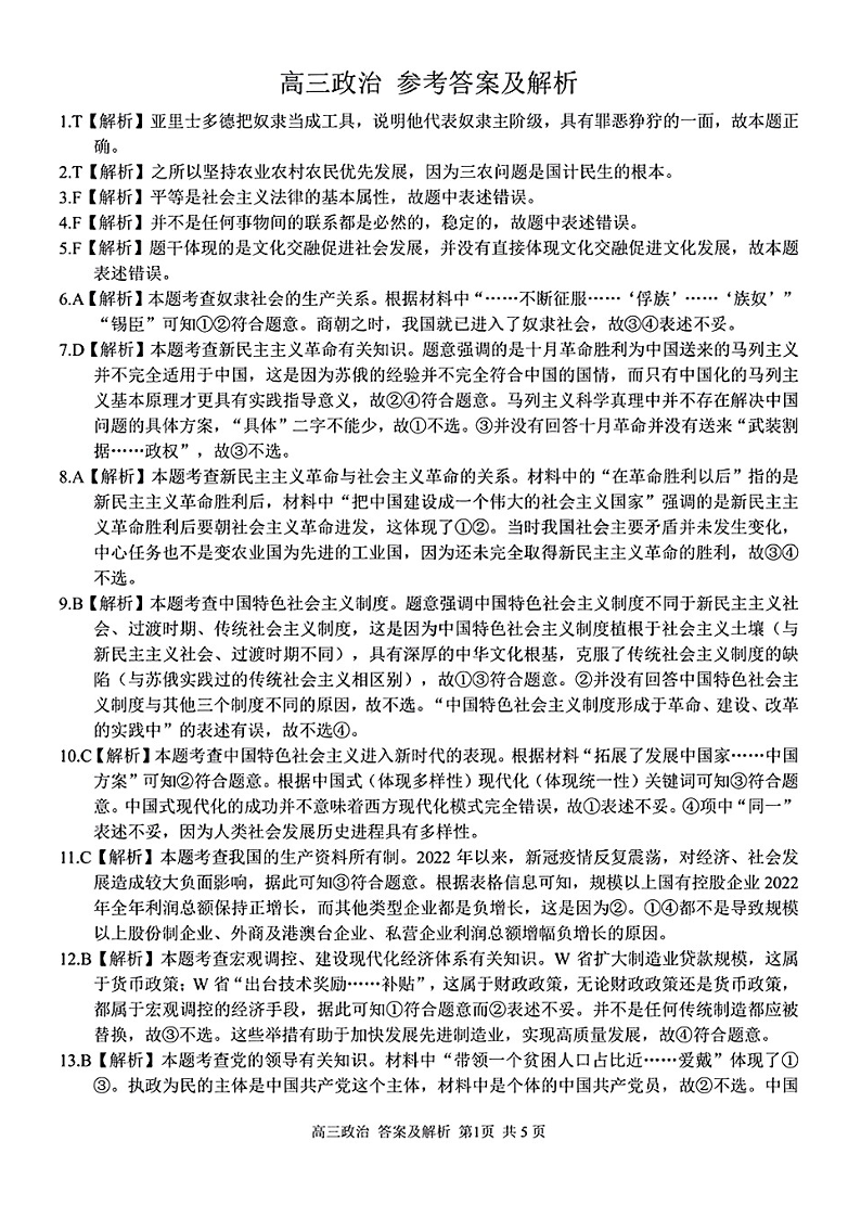 【浙江卷】浙江省金丽衢十二校、七彩阳光等校2022-2023学年高三下学期3月联考政治学科参考答案及解析