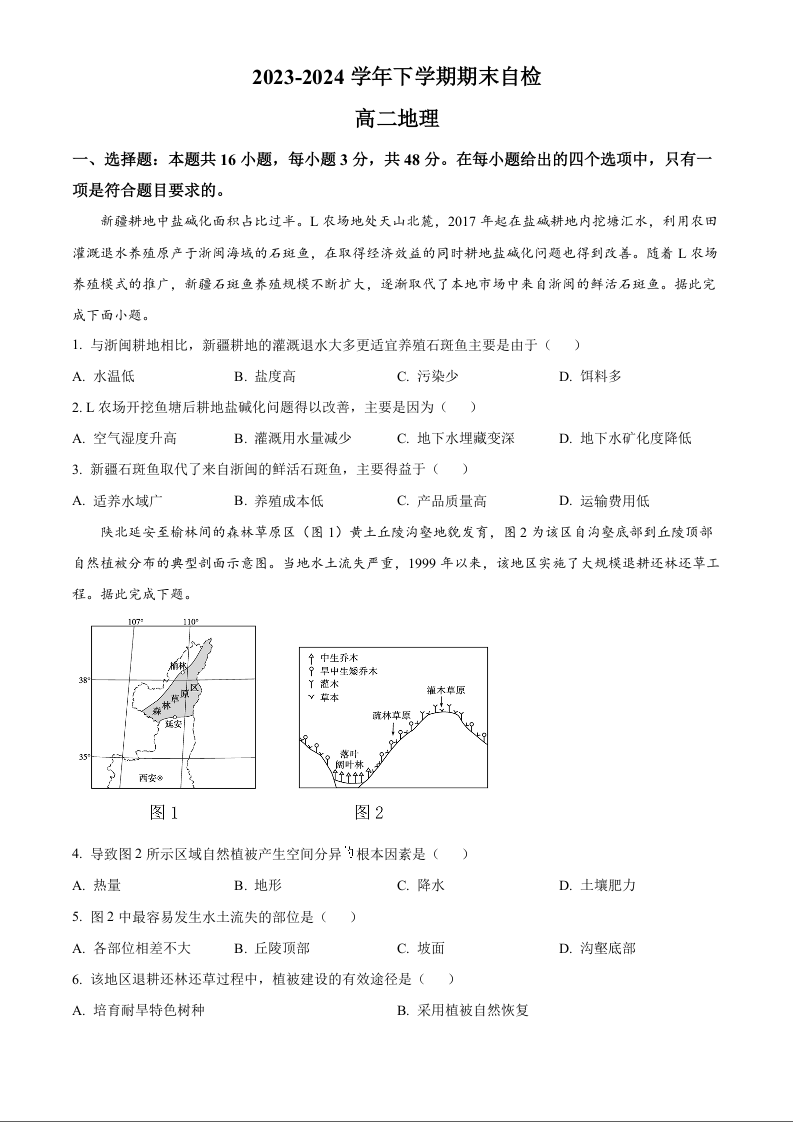 湖南省益阳市安化县两校联考2023-2024学年高二下学期7月期末考试 地理
