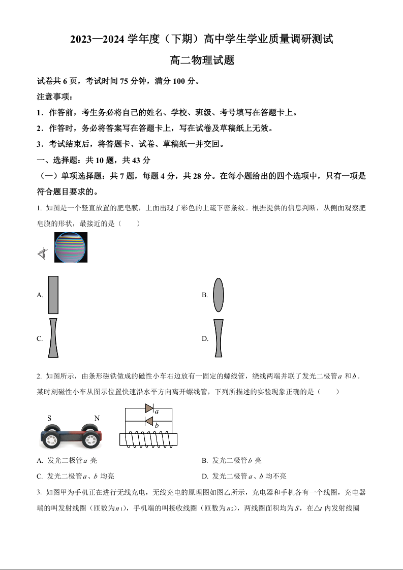 重庆市万州区2023-2024学年高二下学期7月期末考试 物理