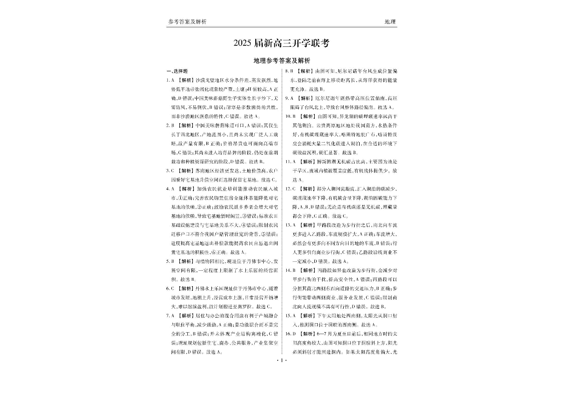 2025届广东衡水金卷新高三8月开学联考 地理答案