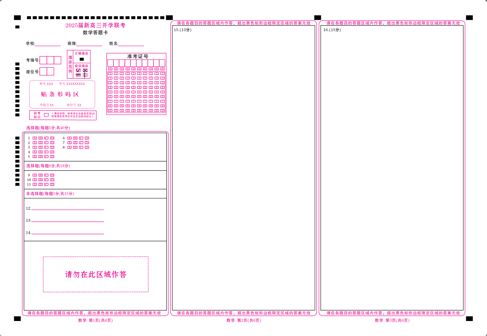 广东省五校(朝汕实验、高州中学、石门、湛江一中等)2024-2025学年高三上学期开学联考 数学答题卡