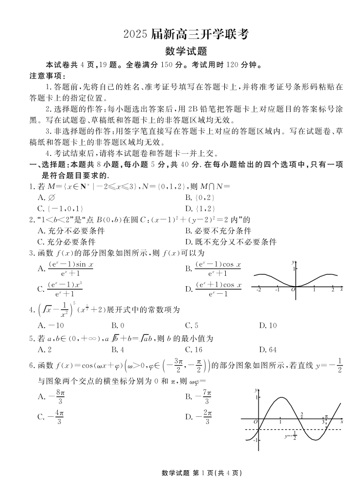 广东省五校(朝汕实验、高州中学、石门、湛江一中等)2024-2025学年高三上学期开学联考 数学