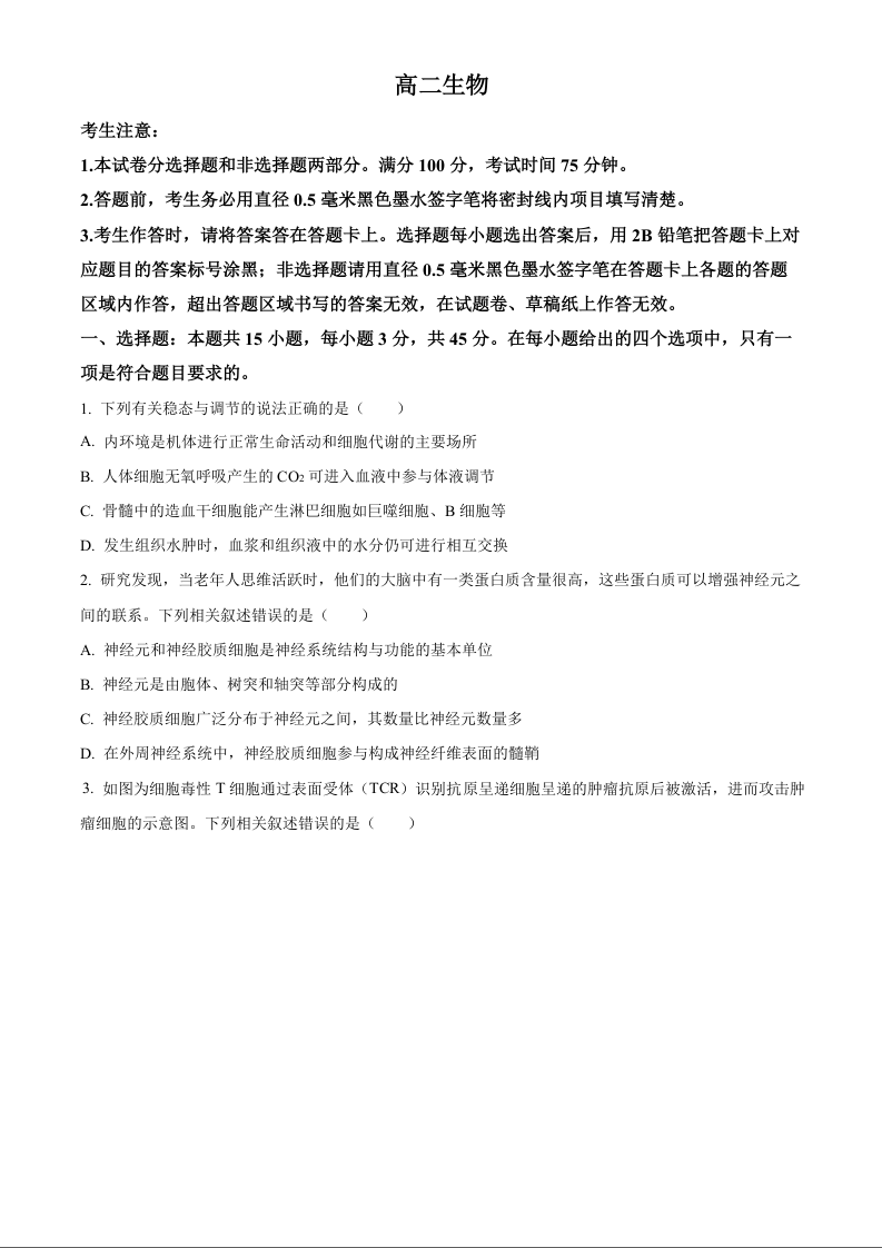 安徽省亳州市2023-2024学年高二下学期7月期末考试 生物