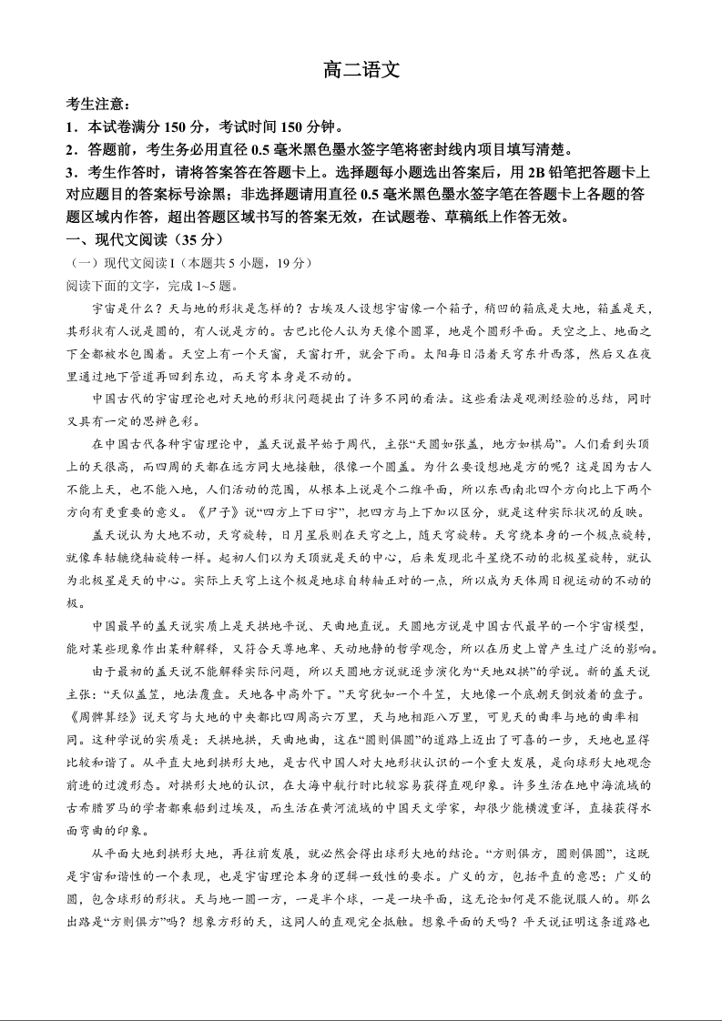 安徽省亳州市2023-2024学年高二下学期7月期末考试 语文