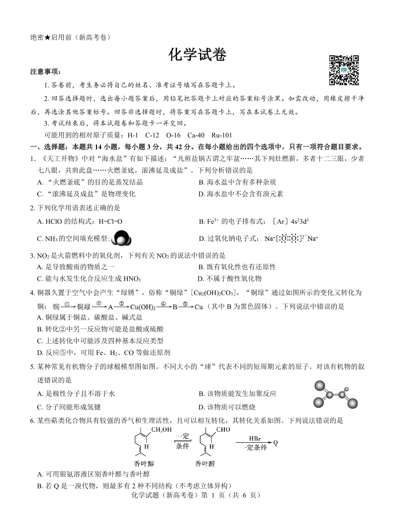 名校教研联盟2024届高三上学期开学考试 化学