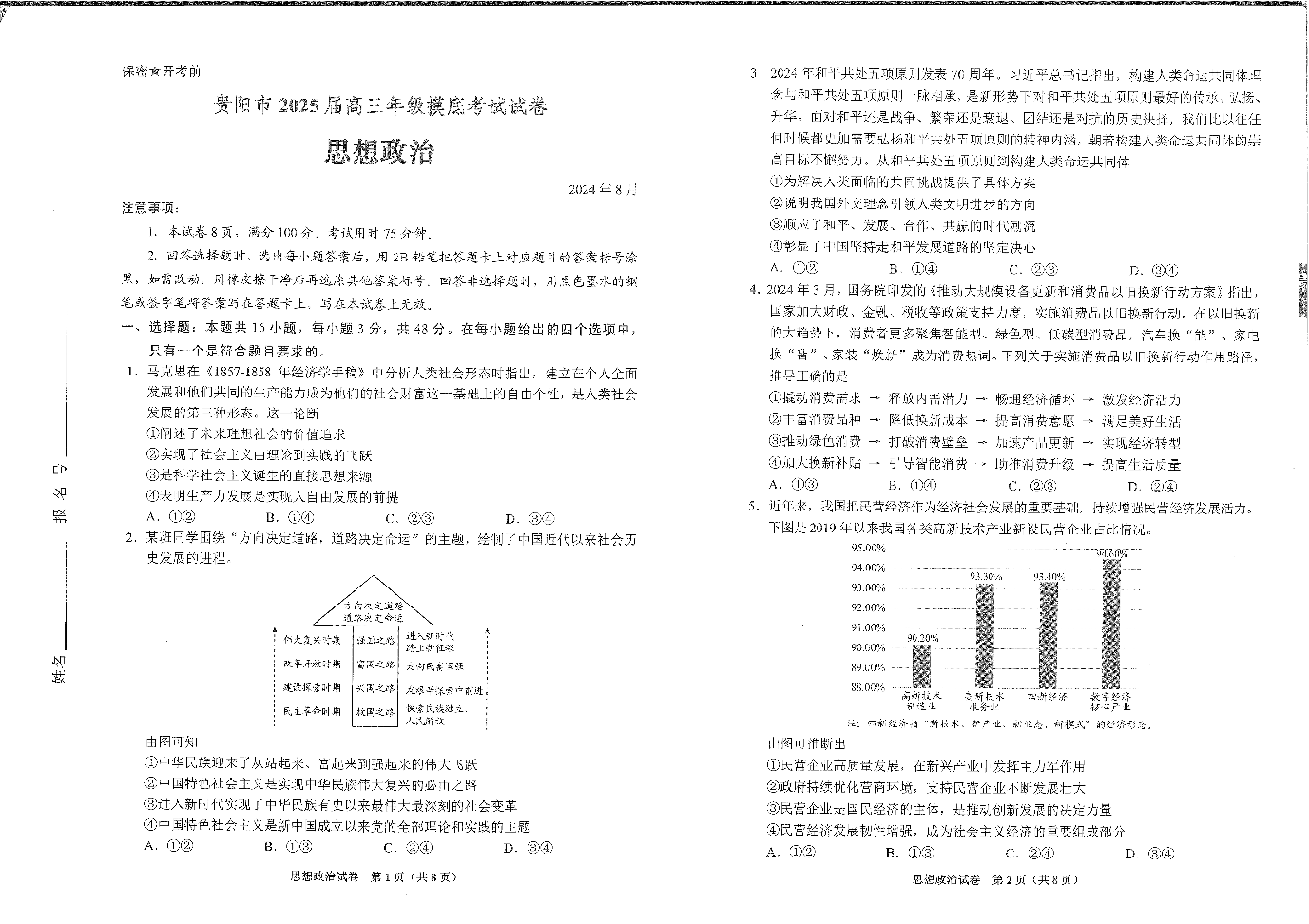 贵州省贵阳市2025届高三年级8月摸底考试 政治