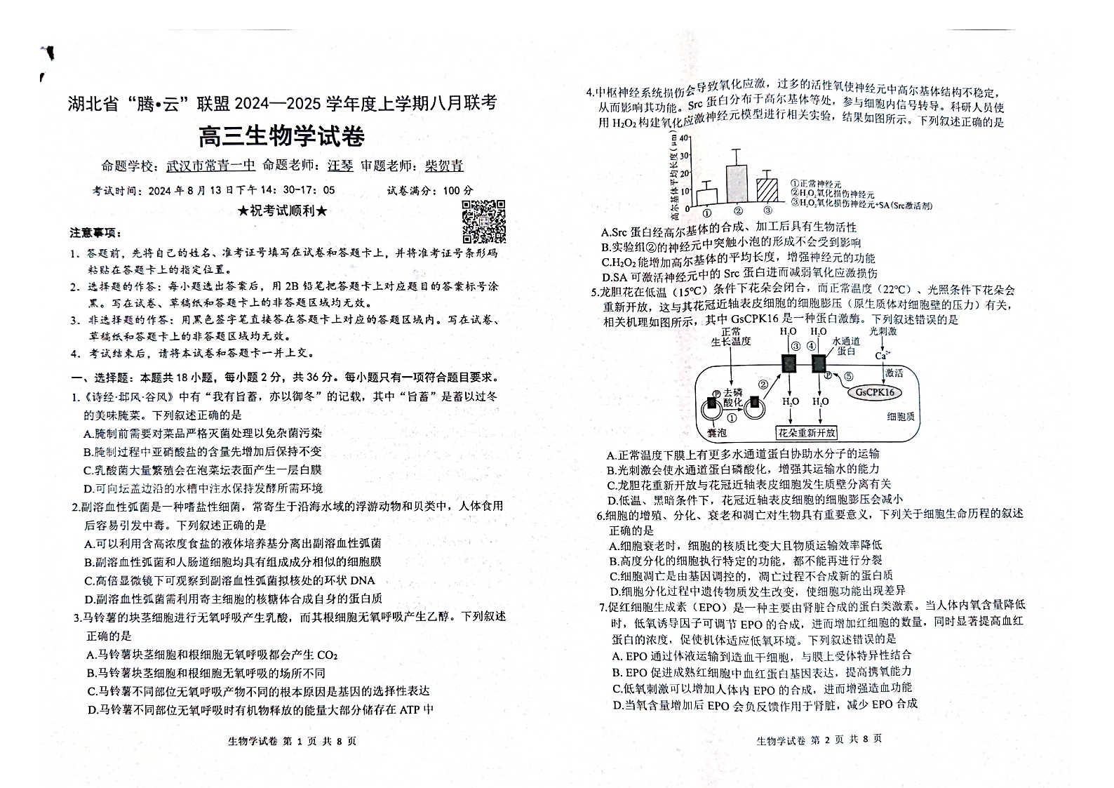 湖北省“腾·云”联盟2025届高三上学期八月联考 生物