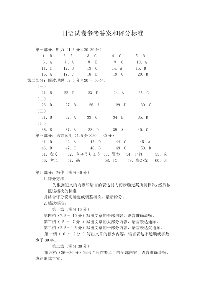 湖北省“腾·云”联盟2025届高三上学期八月联考 日语答案