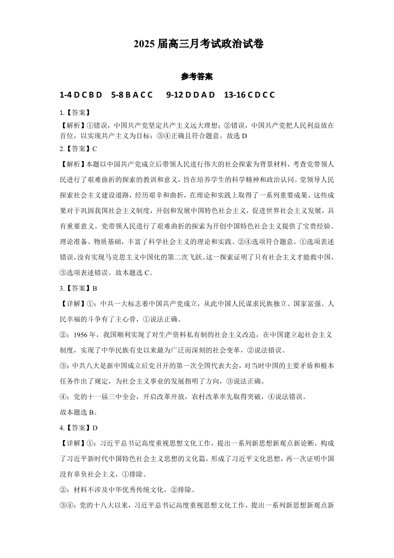 湖北省重点高中智学联盟2025届新高三8月联考考试 政治答案