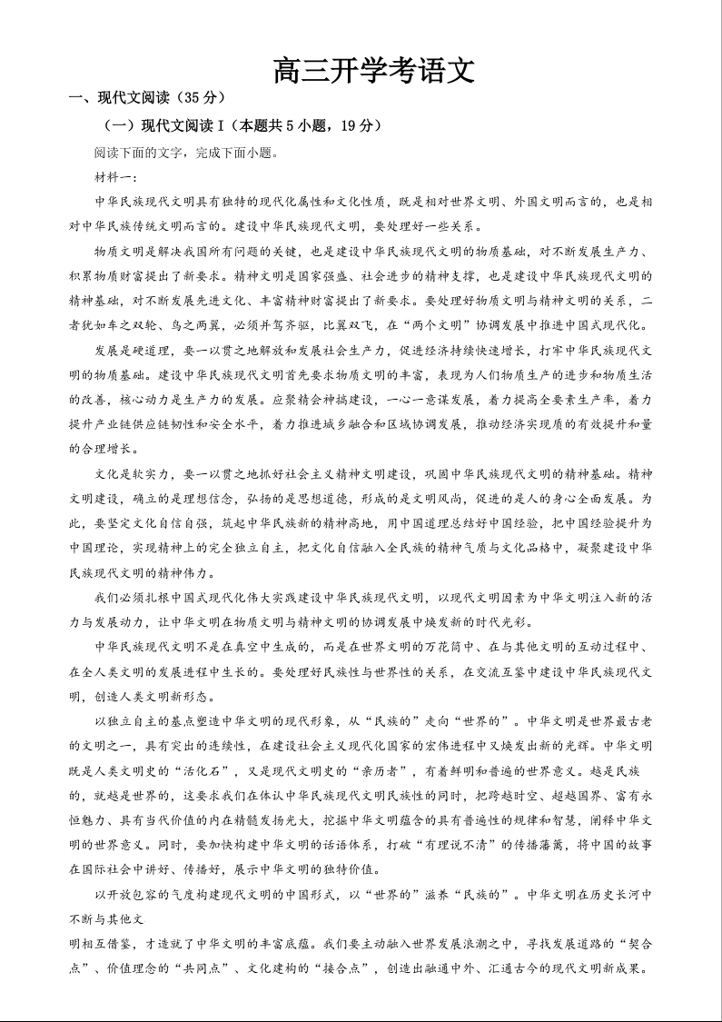 吉林省通化市梅河口市第五中学2024-2025学年高三上学期开学考试 语文