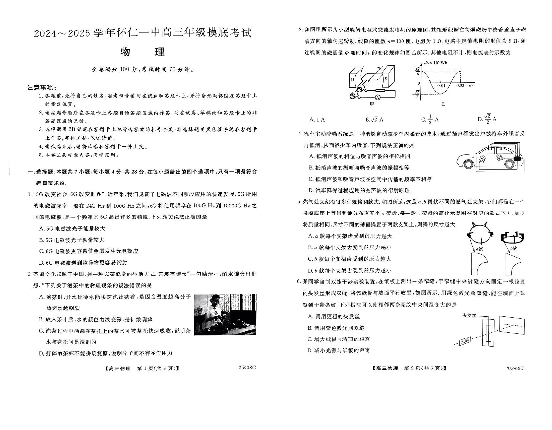山西省朔州市怀仁市第一中学校2025届高三上学期摸底考试 物理
