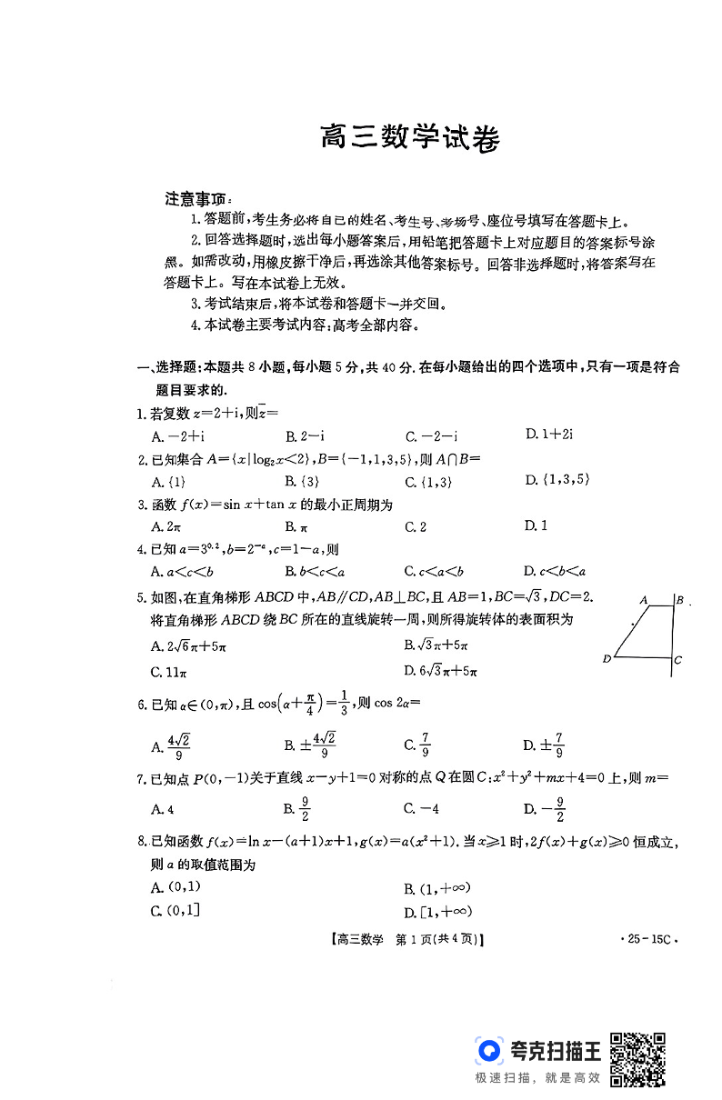贵州省黔东南苗族侗族自治州2024-2025学年高三上学期开学考试 数学