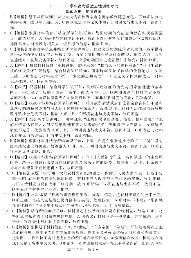 历史答案2023届河北省高三下学期高考前适应性考试