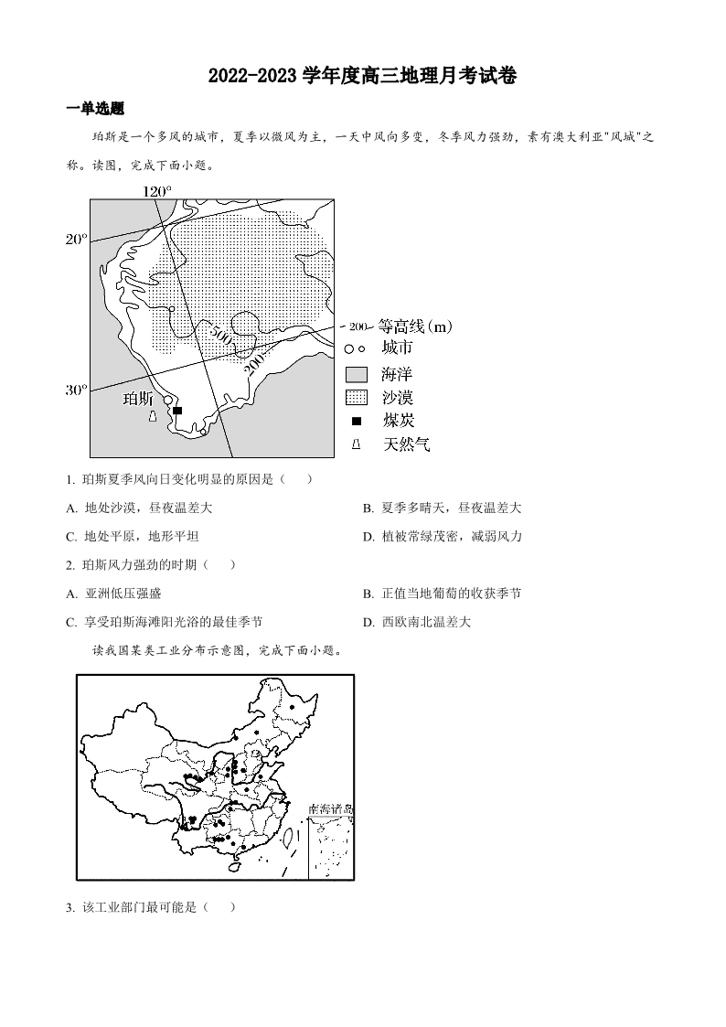 河北省邯郸市大名县第一中学2022-2023学年高三下学期2月月考地理试题