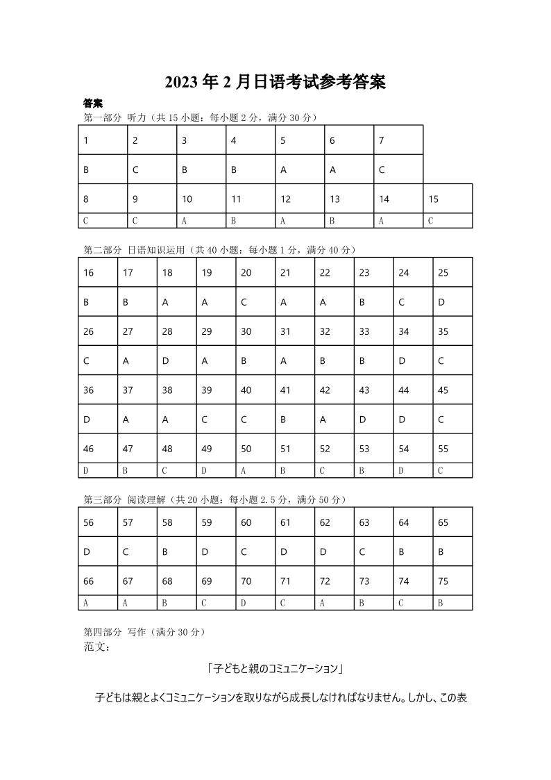 河北省邯郸市大名县第一中学2022-2023学年高三下学期2月月考考试日语答案