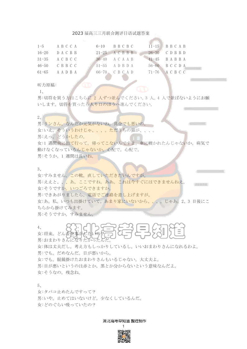 2023届湖北名校联盟(圆创)高三三月联合测评 日语答案