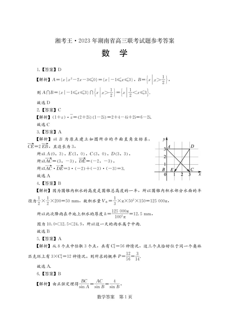 湖南省衡阳市2023届高三第二次联考(二模)数学答案