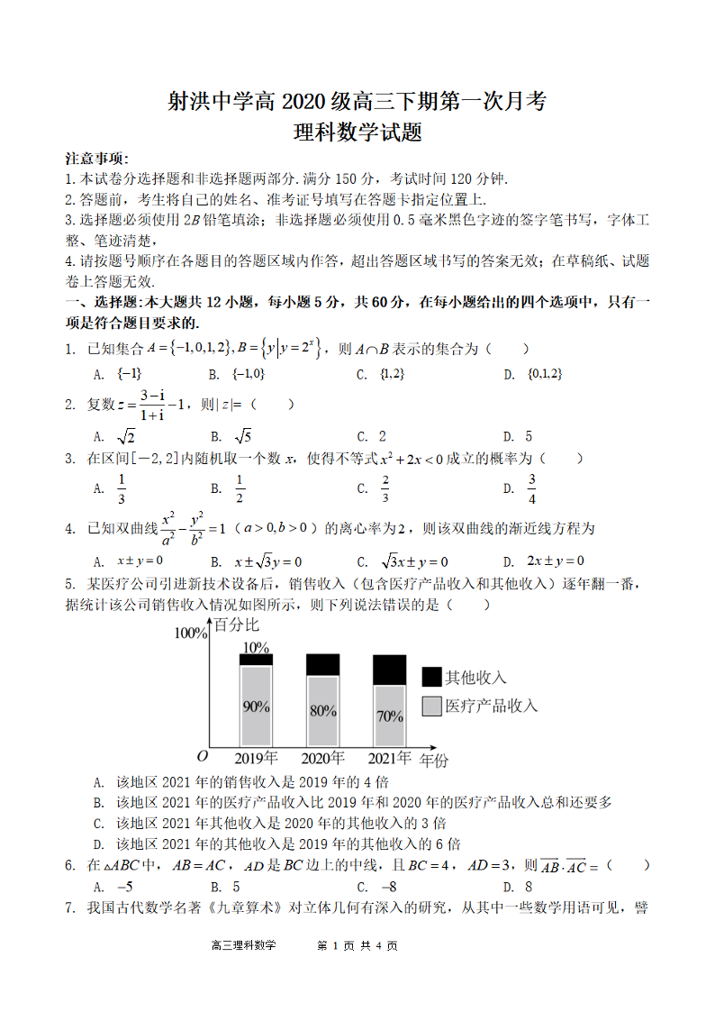 四川省射洪中学2022-2023学年高三下学期3月第一次月考 理科数学
