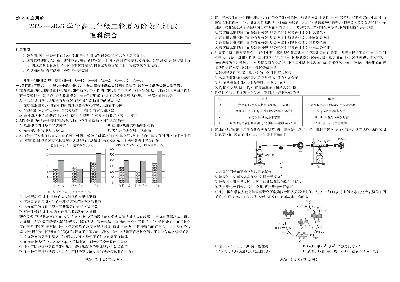江西省部分学校2022-2023学年高三下学期二轮复习阶段性测试(3月联考)理科综合试题