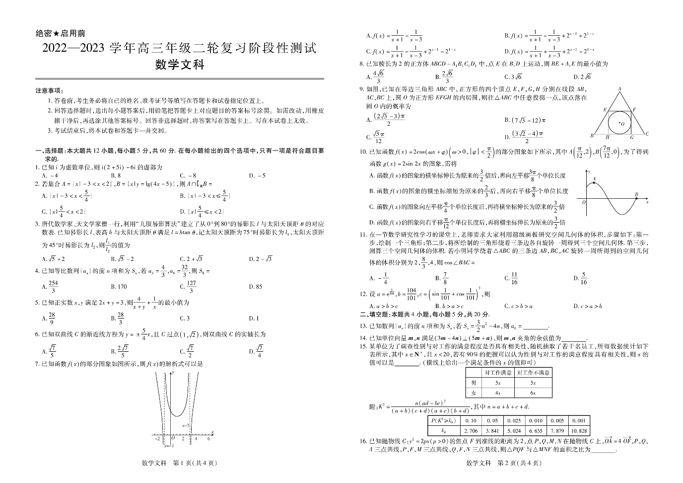 江西省部分学校2022-2023学年高三下学期二轮复习阶段性测试(3月联考)数学文科试题