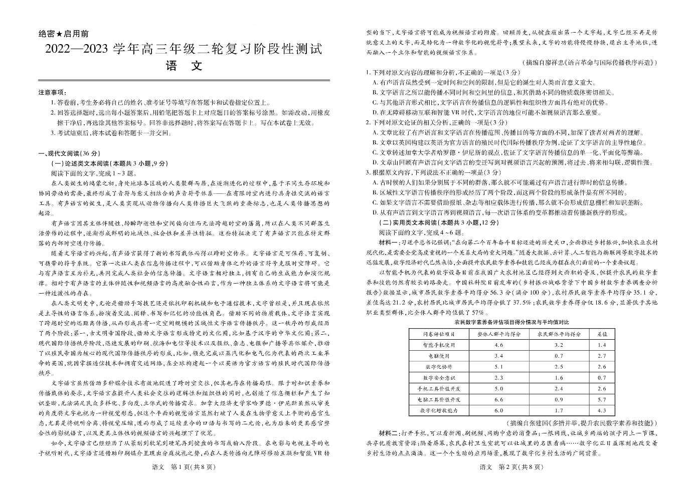 江西省部分学校2022-2023学年高三下学期二轮复习阶段性测试(3月联考)语文试题
