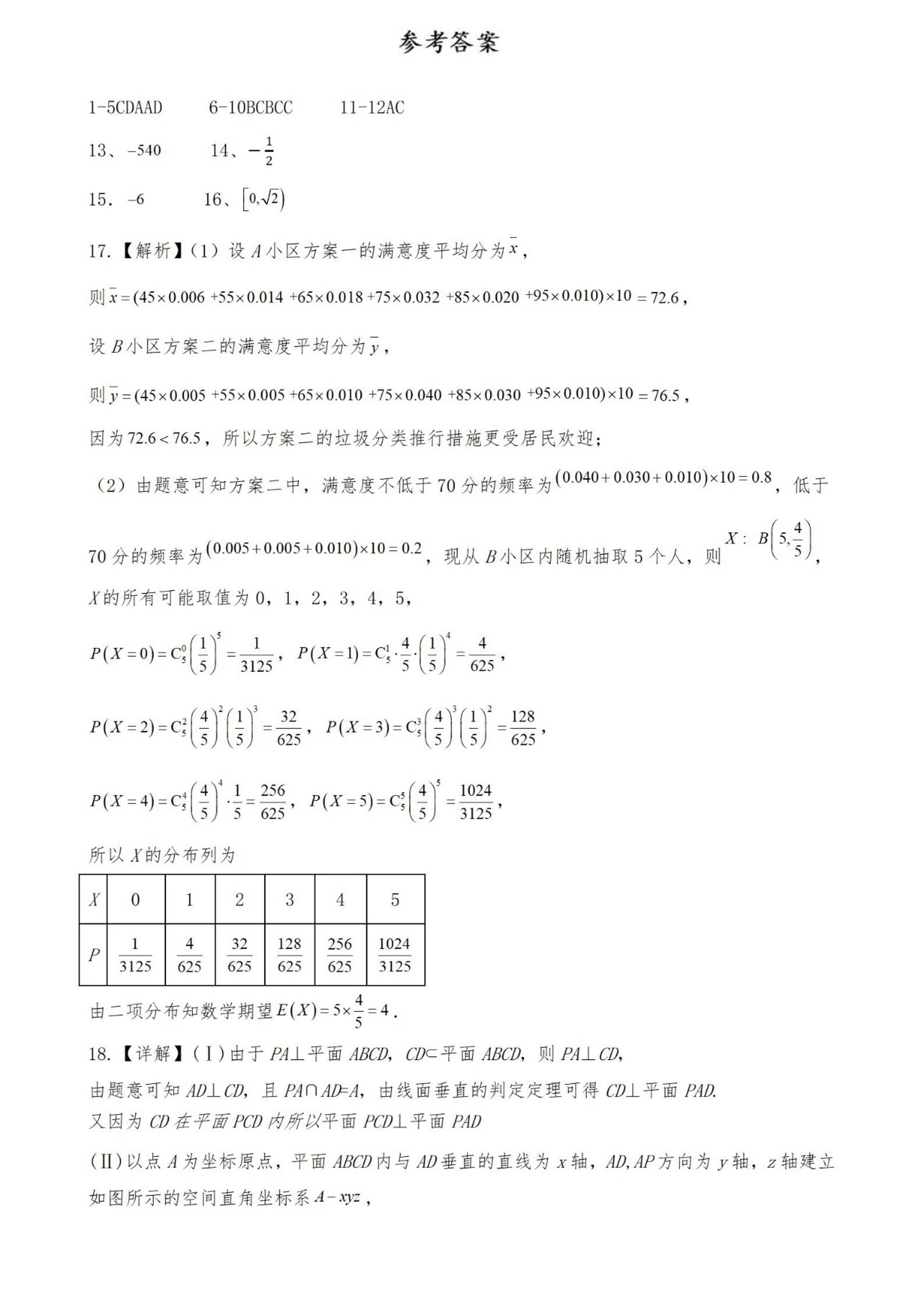 宁夏回族自治区银川一中2023届高三第一次模拟考试丨理数答案