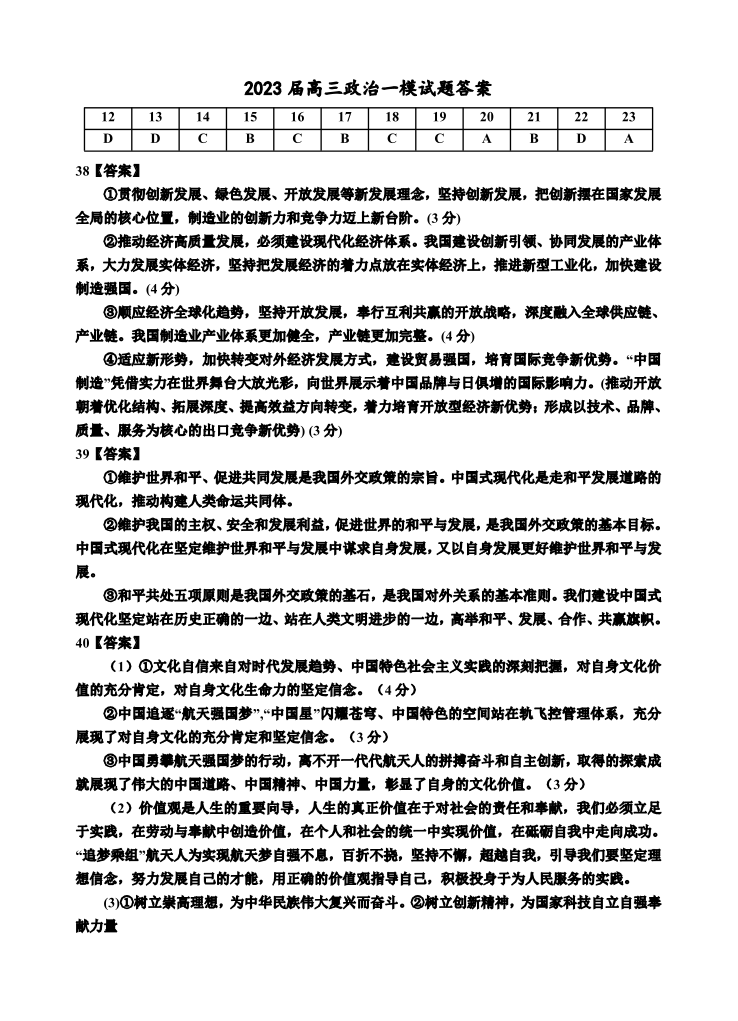宁夏回族自治区银川一中2023届高三第一次模拟考试丨文综政治答案