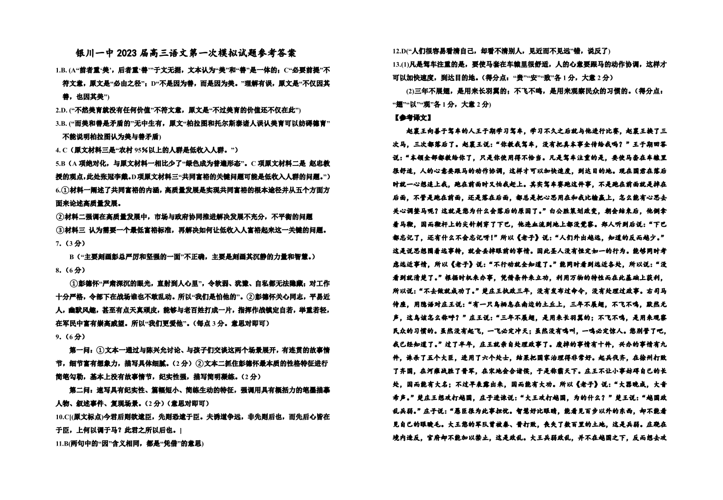 宁夏回族自治区银川一中2023届高三第一次模拟考试丨语文答案