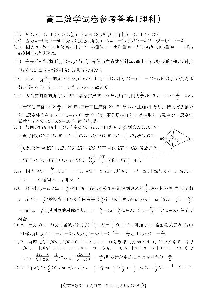 甘肃省陇南市2023届高三二诊 理科数学答案