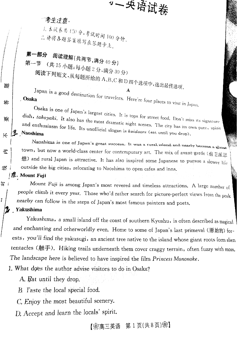 甘肃省陇南市2023届高三二诊 英语