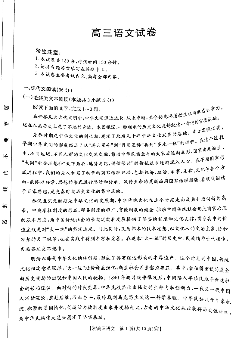 甘肃省陇南市2023届高三二诊 语文