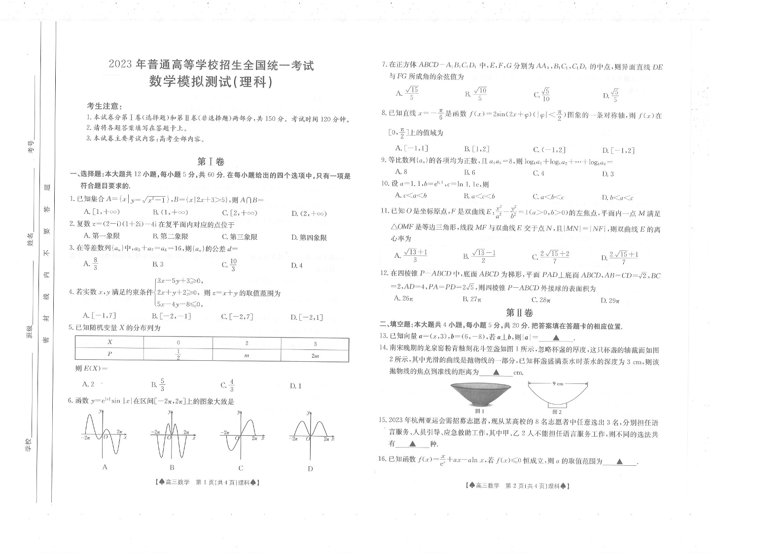 2023届陕西省部分名校高考仿真模拟测试 理数