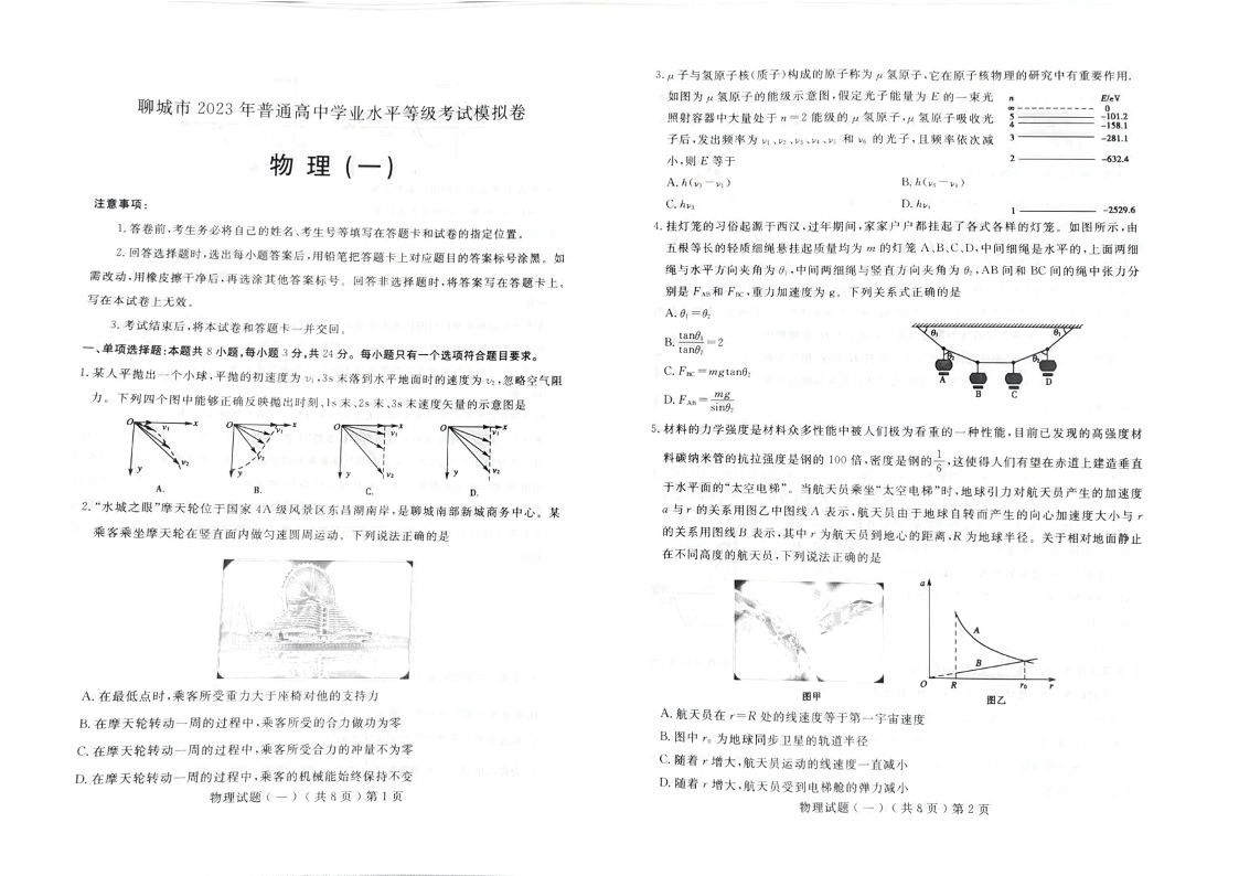 山东省聊城市2023届高三下学期第一次高考模拟考试 物理