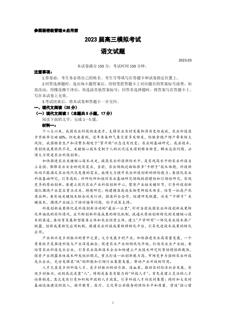 2023届山东省枣庄市高三(二模)丨语文