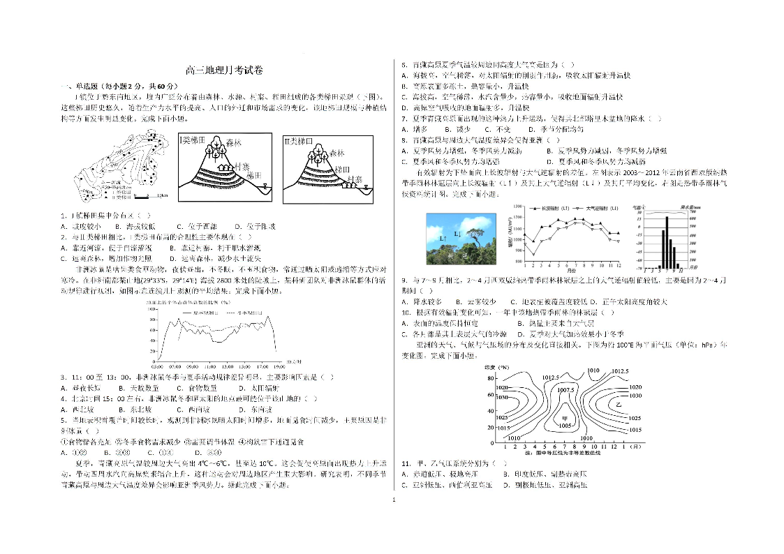 新疆石河子第一中学2024-2025学年高三上学期开学考试 地理