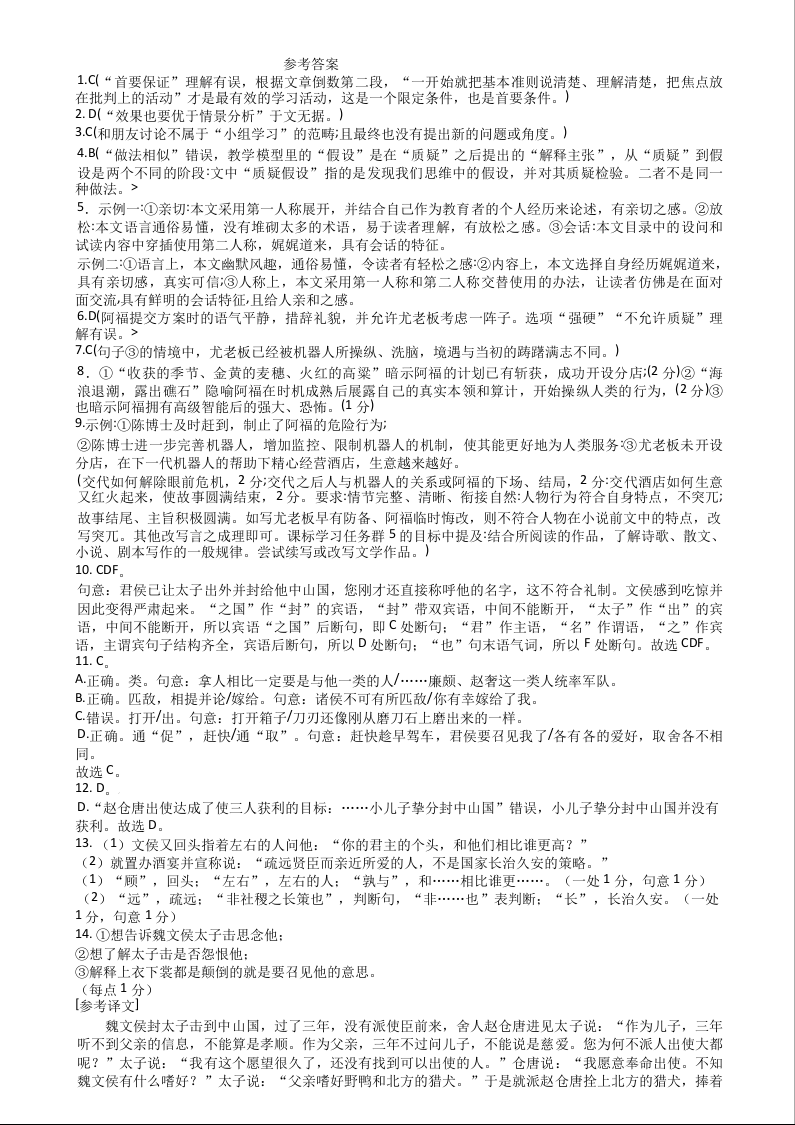 新疆石河子第一中学2024-2025学年高三上学期开学考试 语文答案