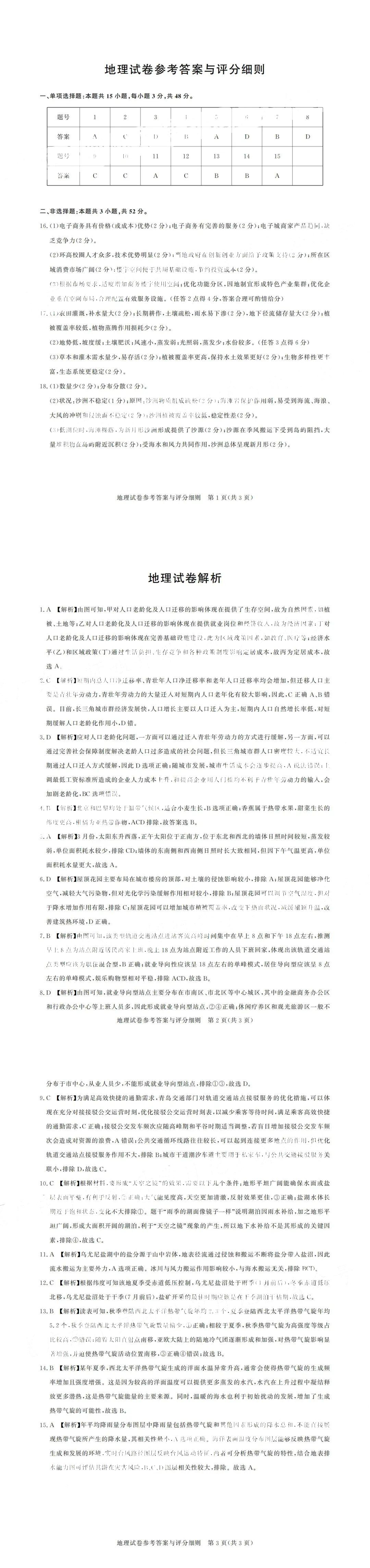 广东省2025届广州市高三年级阶段训练暨8月摸底考试(市调研考)地理答案