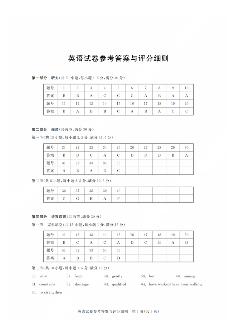 广东省2025届广州市高三年级阶段训练暨8月摸底考试(市调研考)英语答案