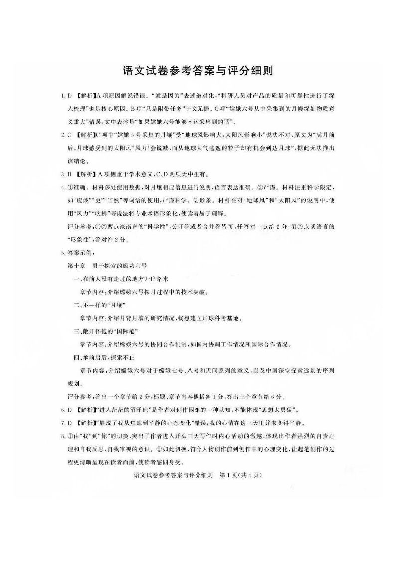 广东省2025届广州市高三年级阶段训练暨8月摸底考试(市调研考)语文答案