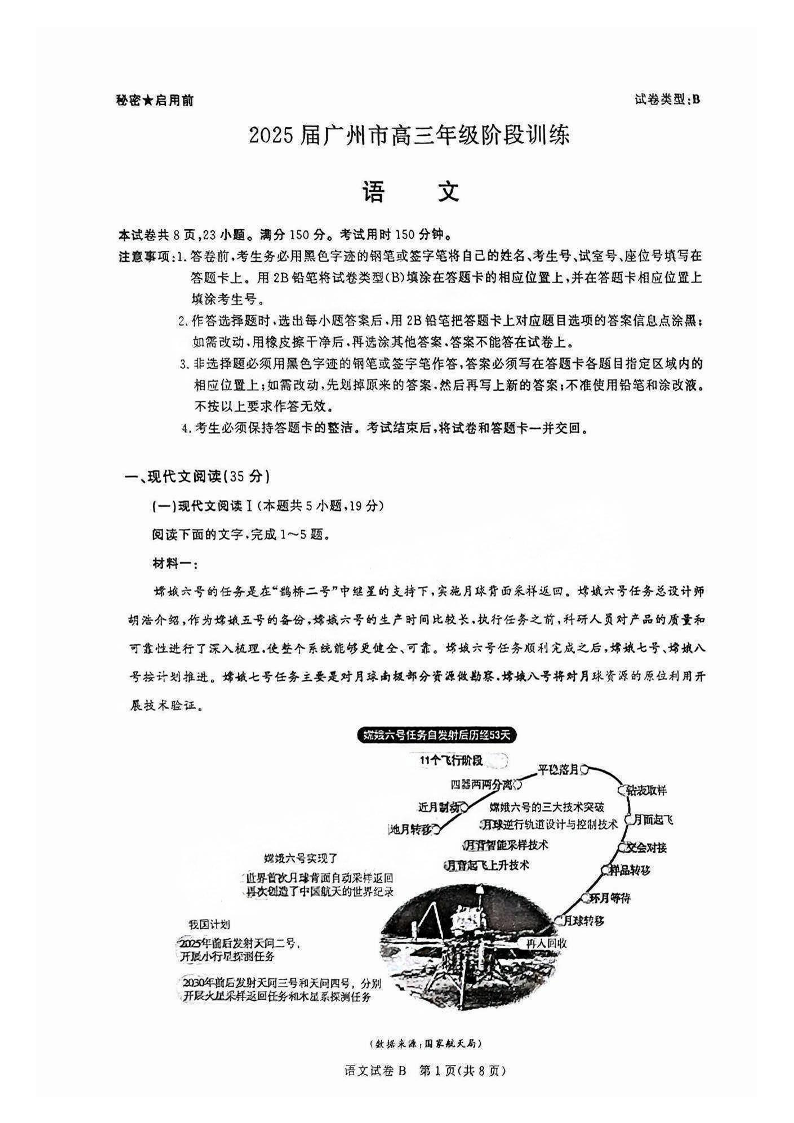 广东省2025届广州市高三年级阶段训练暨8月摸底考试(市调研考)语文