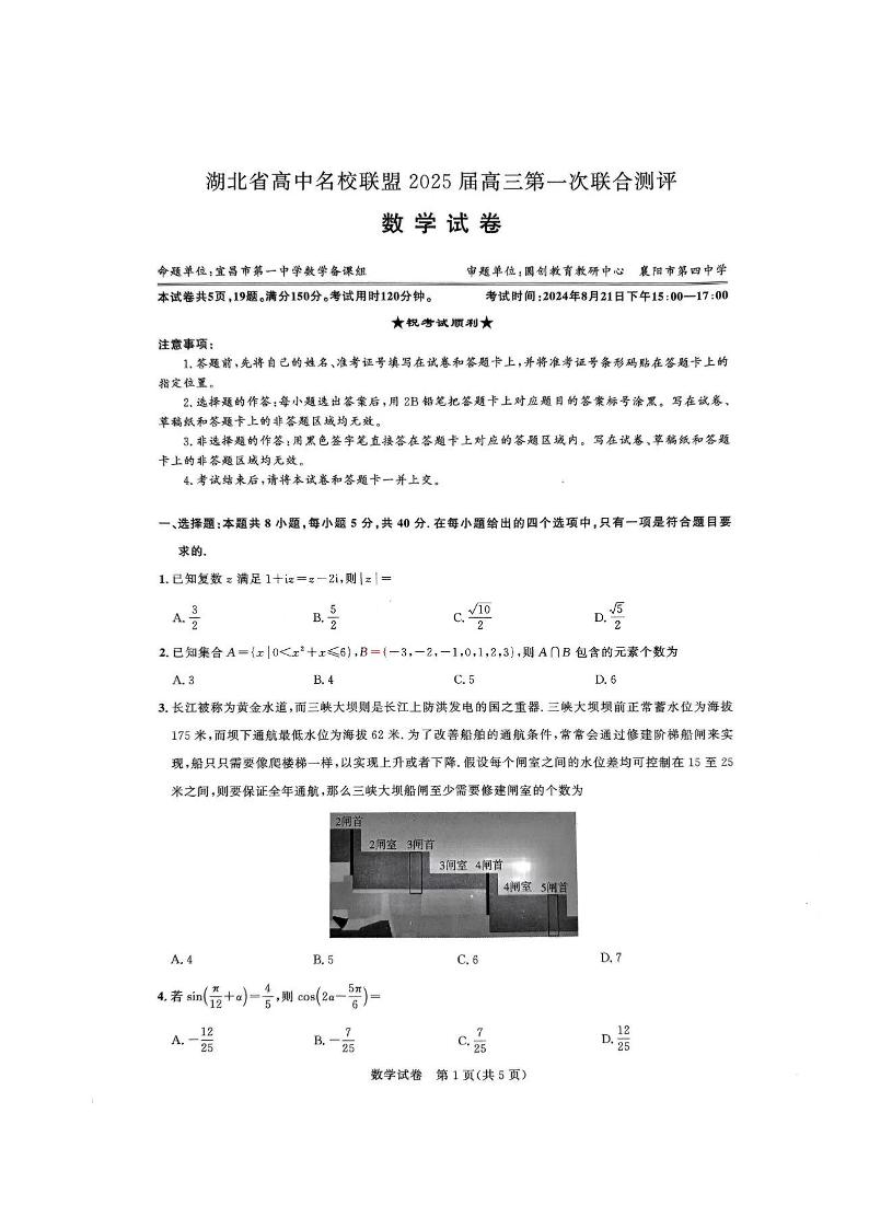 湖北省高中名校联盟2025届高三第一次联合测评 数学